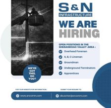 S&N Infrastructure is actively hiring skilled professionals across our Electric Distribution team in the Shenandoah Valley